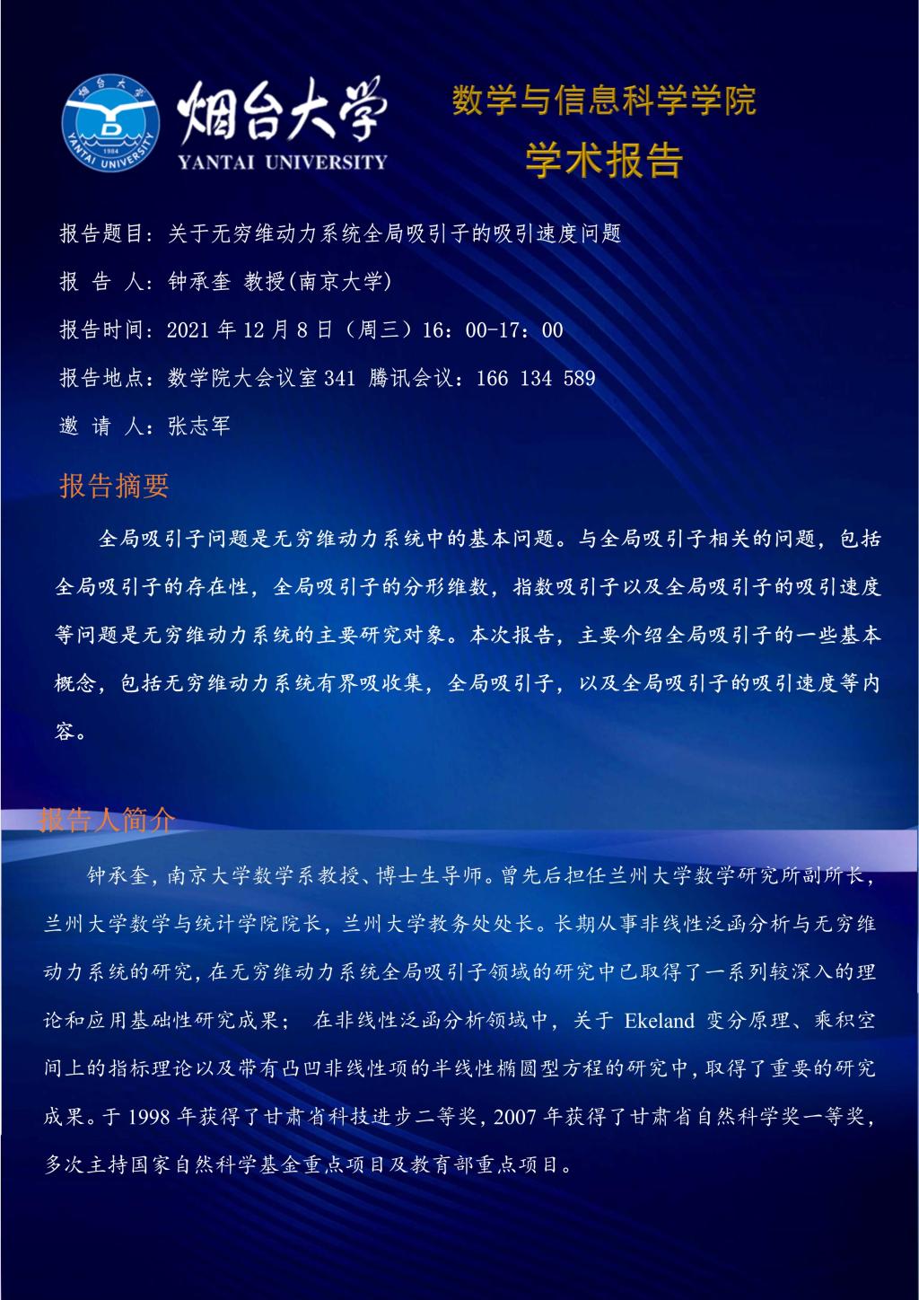学术报告-钟承奎 教授(南京大学)